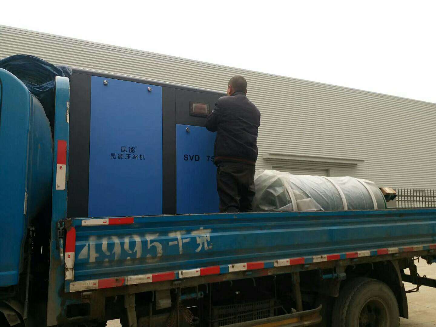 55KW變頻螺桿空壓機運抵廣漢某塑料廠